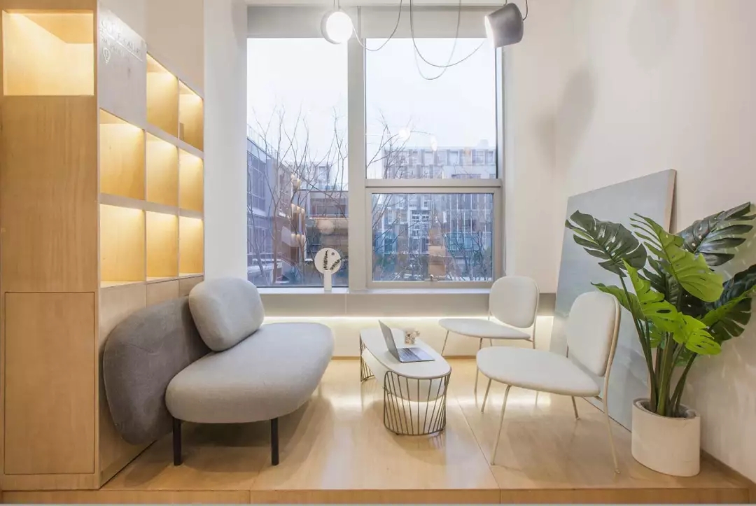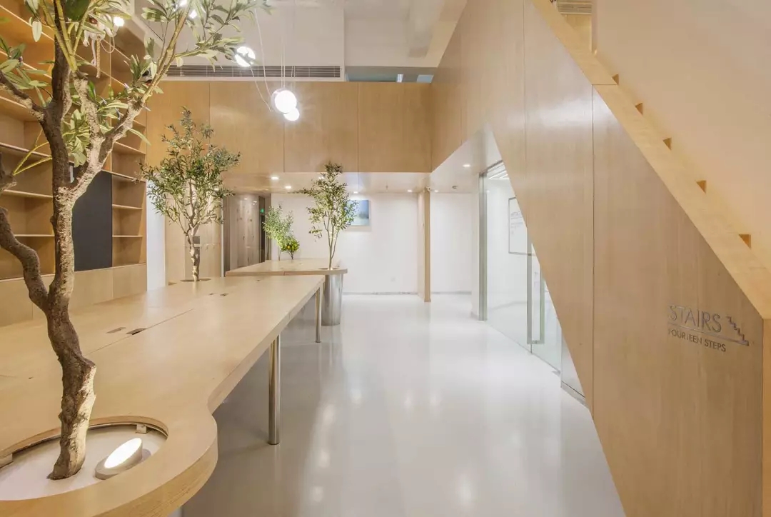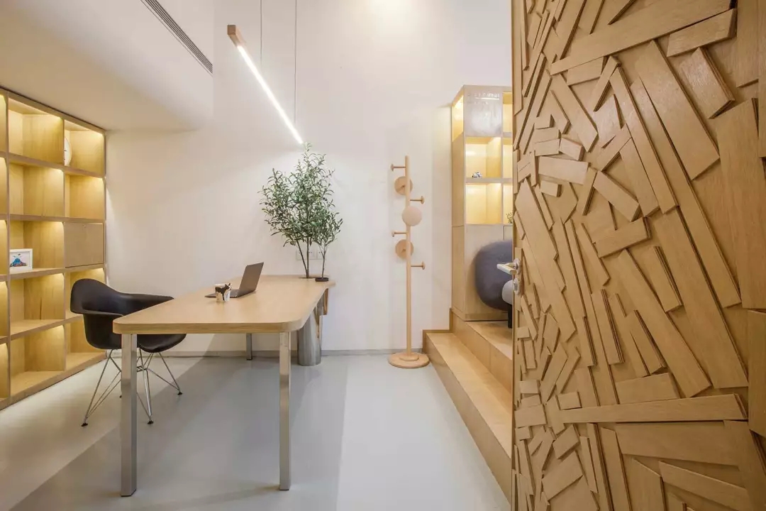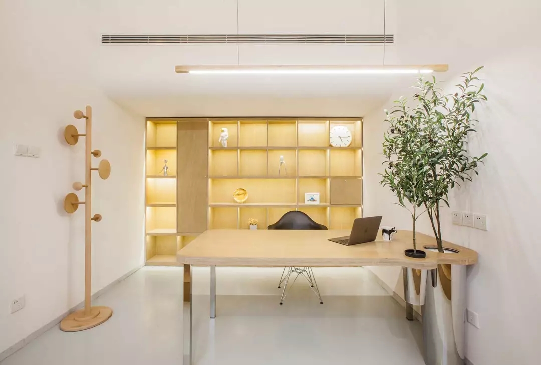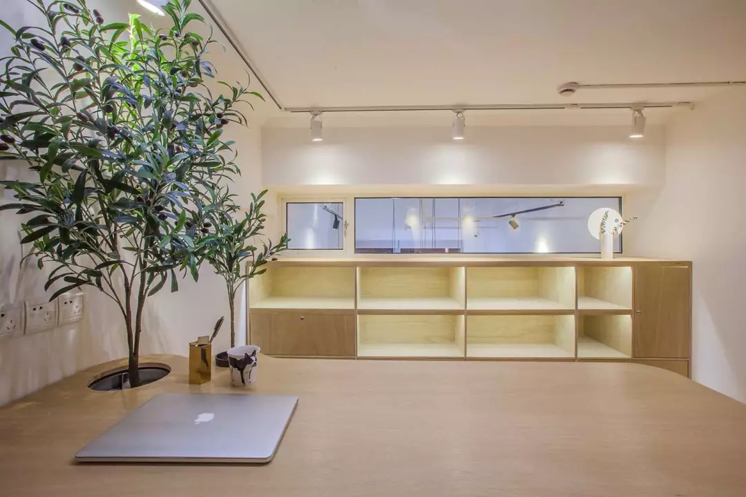 該項(xiàng)目位于上海市閔行區(qū)七寶萬科國(guó)際;我們希望工作室足夠的輕松、溫性、創(chuàng)意,于是通過顯性與隱性的符號(hào)對(duì)我們的目標(biāo)進(jìn)行構(gòu)建;空間用了大量溫暖的木色,并組成木質(zhì)的空間體塊,這些體塊以整個(gè)白色空間為背景,進(jìn)行功能與空間節(jié)奏上的構(gòu)筑: