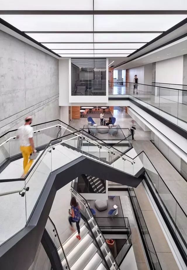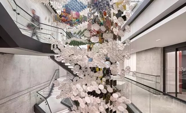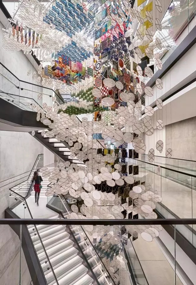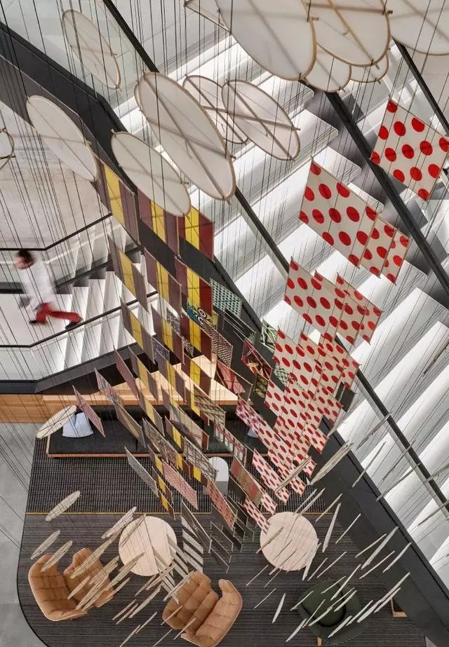 麥當勞總部芝加哥一個充滿活力的長廊布局像博物館或畫廊空間每個總部的九個故事都被設想為一個逐層展開的“篇章”。建筑物中央中庭的多向樓梯提供了醒目的焦點和休閑互動的大道,同時也創(chuàng)造了一種在許多方向向前移動的ESCHER-ESQUE感覺。在這里,JACOBHASHIMOTO的巨型藝術作品向下瀑布,包括數(shù)百個他的標志性微型“風箏”。