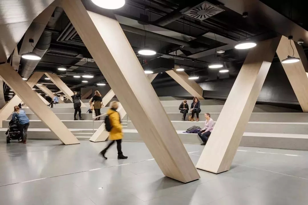 但其實據(jù)設(shè)計頌歌的主建筑師之一南安迪(Antti Nousjoki)講,靈感的出發(fā)點,還是在于考慮它的功能。作為一個地處赫爾辛基市中心,毗鄰熱鬧商圈、火車站和美術(shù)館的公共空間,能夠給市民們帶來什么樣的服務(wù)?又能填補(bǔ)哪些缺失的城市設(shè)施?