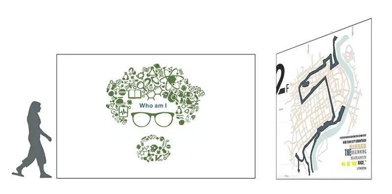 以上是本期課程第一個重點——環(huán)境圖形的內(nèi)容界定。它包括室內(nèi)的導視標識、一系列公司的文化展示,這兩塊內(nèi)容基本構成了室內(nèi)環(huán)境圖形設計的設計內(nèi)容。