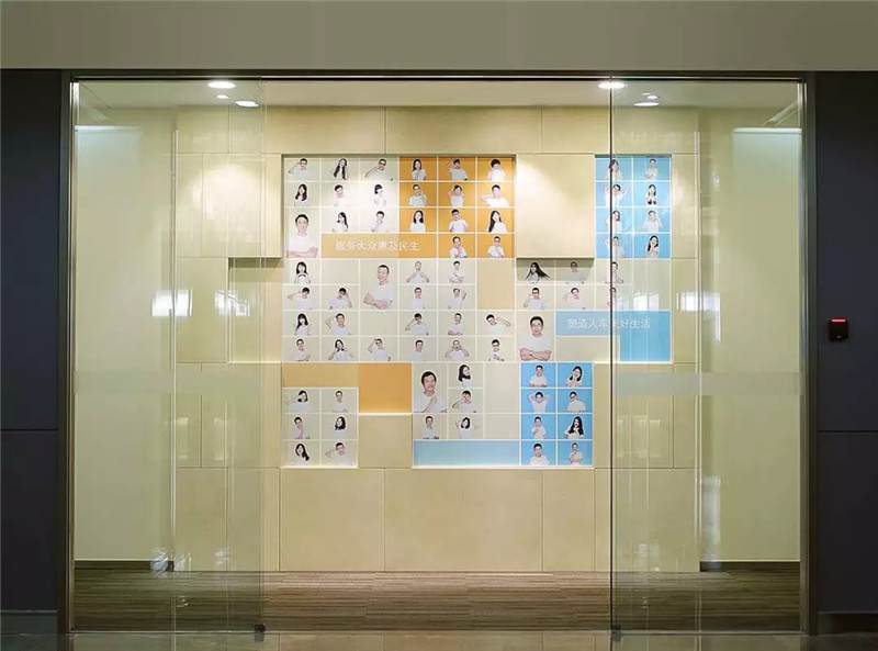 這一部分內(nèi)容跟展示設計相似,例如上圖,龍湖集團辦公室內(nèi)的一些項目展示團隊的建設,利用了大面積墻面上的空間進行了設計和制作。