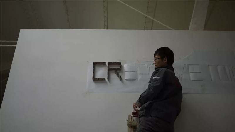 另外一面墻也是石材的墻面,我們利用石材的不同風格,采用絲網(wǎng)印刷的工藝,將客戶的LOGO大寫印在了墻上,效果非常好。實際看工人師傅操作也很神奇,大家有興趣的時候可以嘗試一下這種工藝。