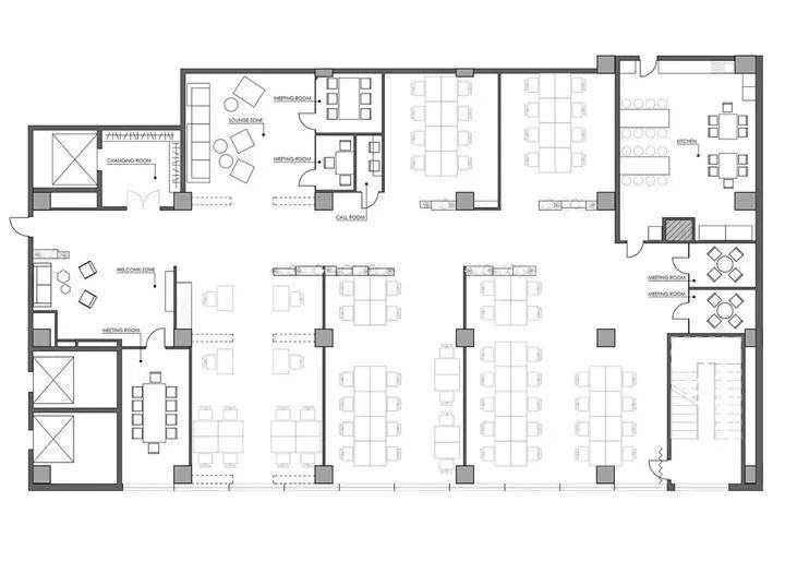 整個辦公室裝修布局建立在開放辦公的概念基礎(chǔ)之上,讓每一個功能空間都能作為一個獨立的有機體進行自由重組和重新定位。