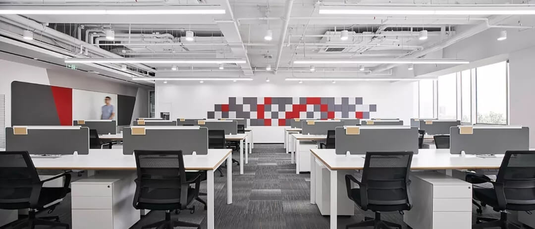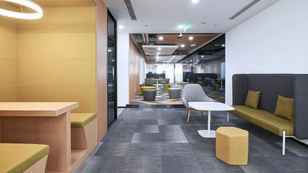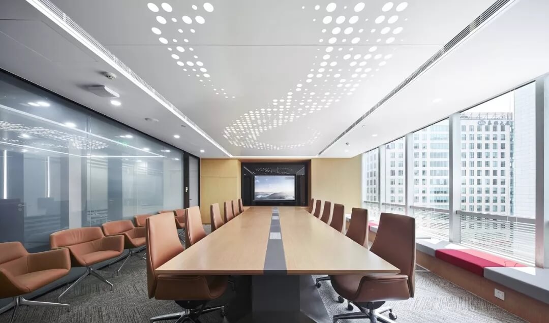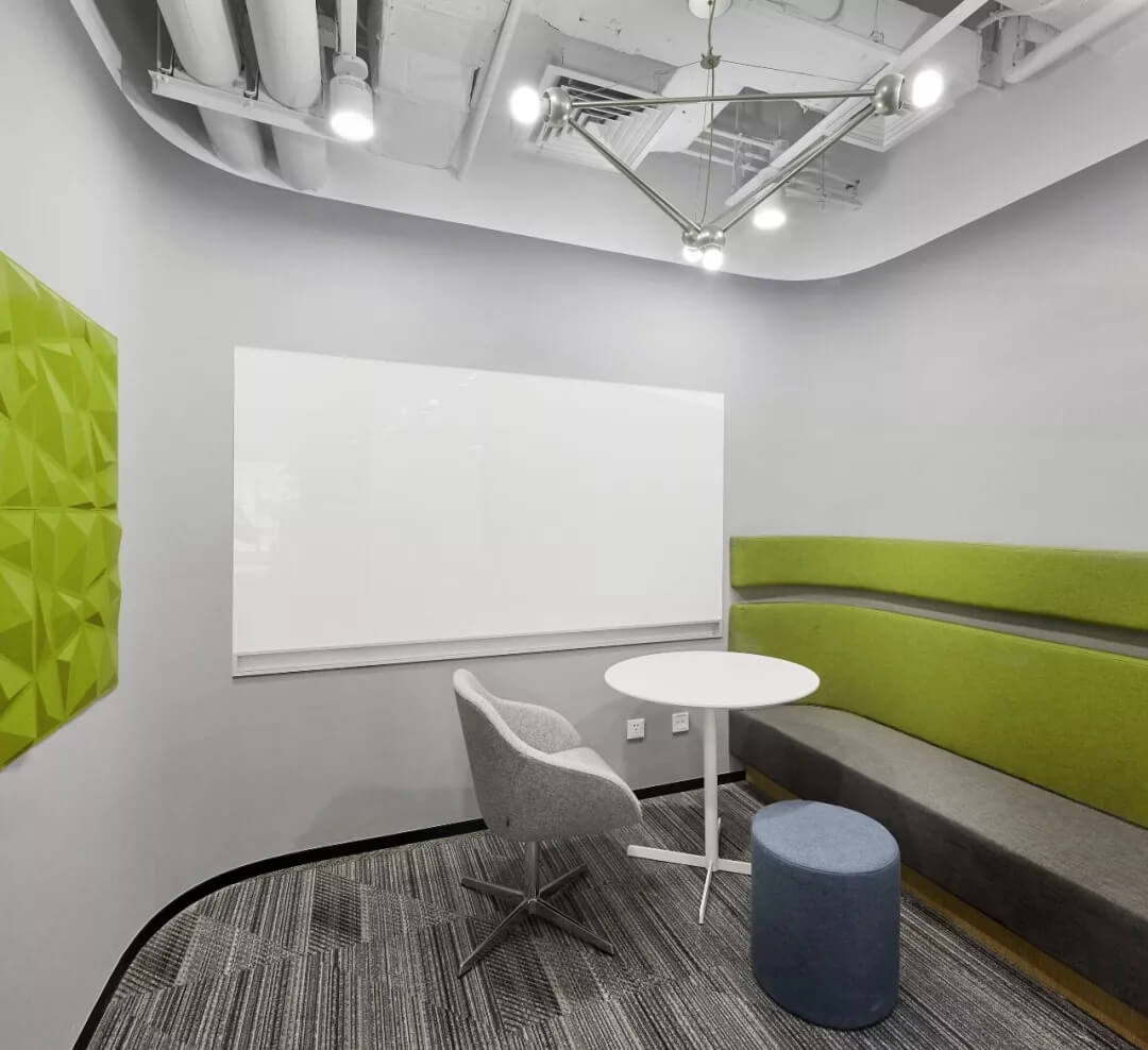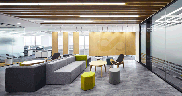 本案標準化辦公區(qū)秉持高效,功能交融,彈性多變的原則,設置大開敞辦公區(qū),多功能培訓室,會議室,經(jīng)理辦公室等空間,聯(lián)結(jié)其他功能配套區(qū)。辦公空間的開敞、通透從普遍客觀立場而言是希望帶來環(huán)境氣氛上的舒適、放松。