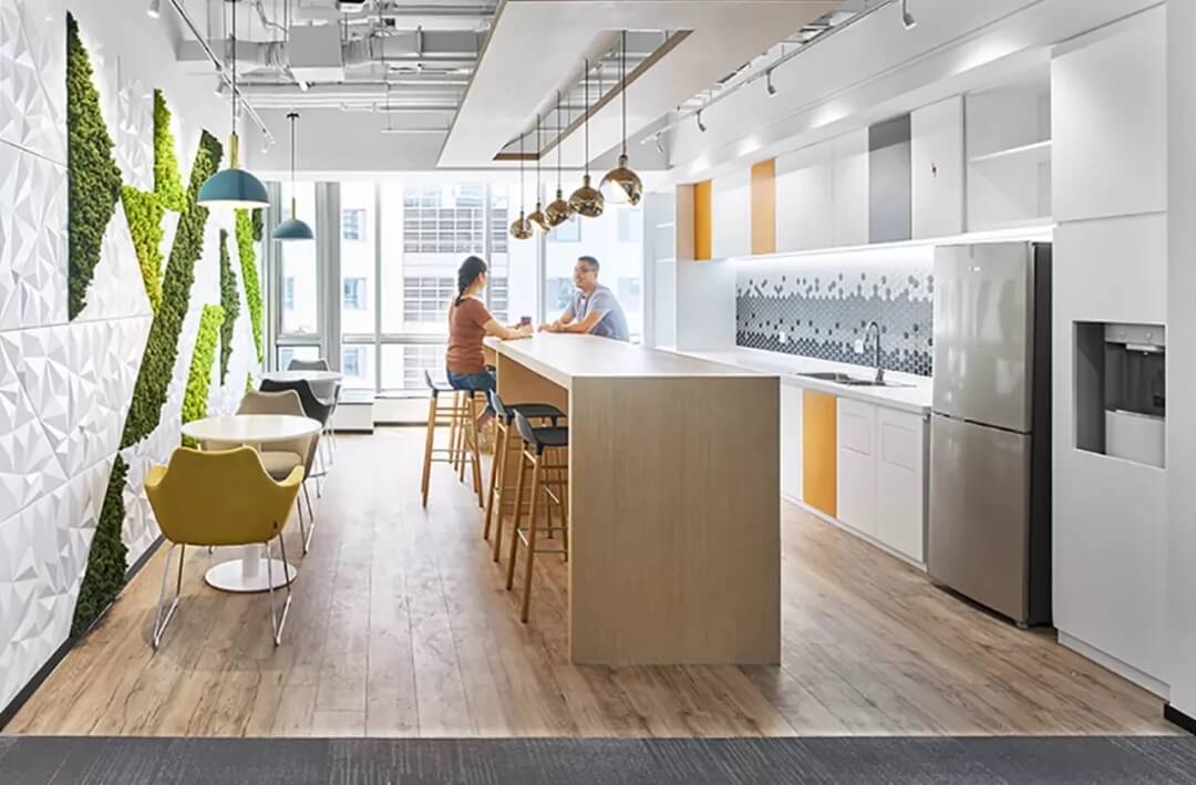辦公空間設計無論如何發(fā)展,追求高效率始終是不變的目標。艾迪爾倡導的靈活辦公,是想通過辦公環(huán)境設計鼓勵員工多互動,更有量有質(zhì)的交流,因此在設定一系列休閑洽談區(qū)以外,茶水區(qū)這一休憩,互動,輕松交流的高頻區(qū)也是設計重點,是體現(xiàn)企業(yè)風格和人文關(guān)懷的重點打造區(qū),滿足員工不同的選擇和空間體驗感。