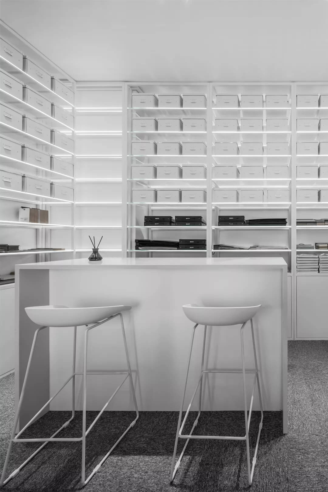 刪繁就簡,以最經(jīng)典的白色為主題搭配色調(diào),沒有繁瑣的辦公室設(shè)計和過多的裝飾,減去辦公中的壓抑感。通過將自然純凈的白色與沉靜黑色相結(jié)合,將品牌形象簡潔地呈現(xiàn)表達,同時為左右空間的過渡創(chuàng)建和諧觀感。純白的墻面,接近心靈的澄凈;仙人掌是視覺的焦點,恣意生長、堅韌、夯實根基,也正寓意著公司的設(shè)計理念:有所依、有所仗、有所長。