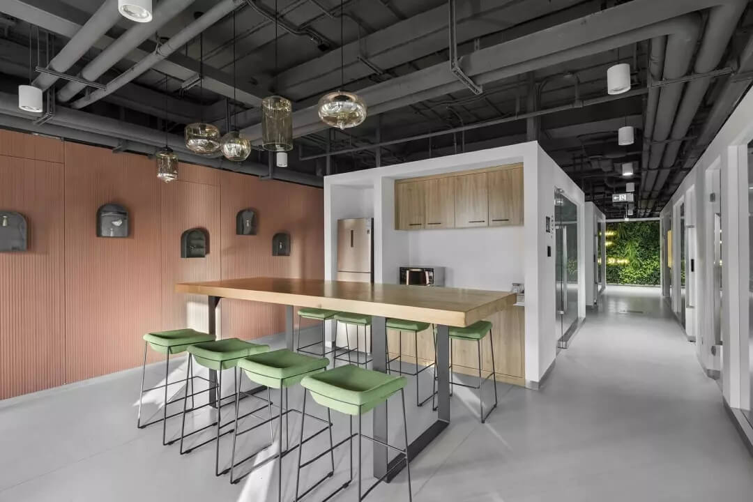 在空間劃分上,我們遵循城市綠色生態(tài)美學,充分利用創(chuàng)新技術(shù)進行模塊化設(shè)計,將裝配式建造、節(jié)能低碳等許多新理念應(yīng)用到整個空間中去,將整體空間劃分成商務(wù)區(qū)、辦公區(qū)和休閑區(qū),具體到擁有獨立辦公室65個,辦公工位464個,會議室5個,以及水吧、咖啡廳、休息艙、茶室、電話亭等共享區(qū),我們想要脫離傳統(tǒng)辦公空間的單調(diào)枯燥,讓一站式的休閑服務(wù)和辦公完美結(jié)合,觸達現(xiàn)代人內(nèi)心的深層需求,從而使整體設(shè)計方案在保持高品質(zhì)的同時做到高效、低成本。