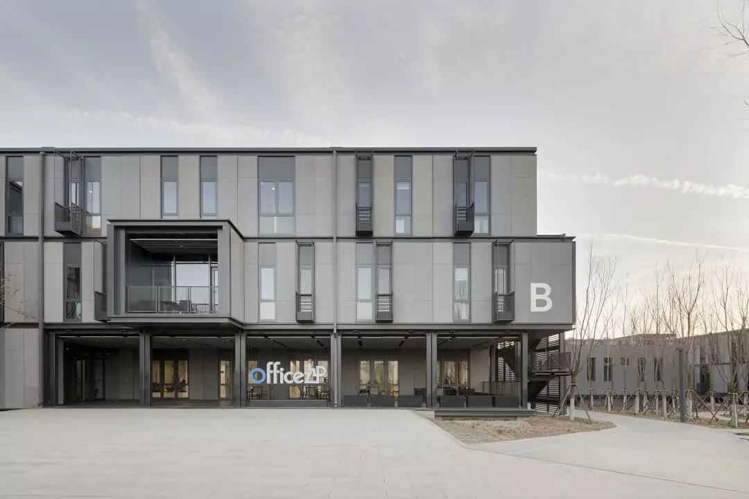 在雄安市民服務(wù)中心這塊占地面積廣達9.96萬平方米的新生沃土上,有序林立著公共服務(wù)區(qū)、行政服務(wù)區(qū)、生活服務(wù)區(qū)、入駐企業(yè)辦公區(qū)四大建筑群落。而當落眼于其中入駐企業(yè)辦公建筑群落中的B棟Officezip時,不禁感受到從內(nèi)而外綻放著的生態(tài)綠意。