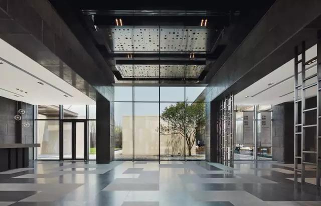 借由東方園林式的假山,打造出“未若柳絮因風(fēng)起”的雪景,美如水墨畫、細(xì)膩至極。這與圍繞式洽談方式布置相結(jié)合,巧妙處理好空間形態(tài)和陳設(shè)之間的關(guān)系。大尺度挑高設(shè)計(jì),加上頂部有序交互的線條,讓空間極具延展性,通透敞亮的照明效果搭配藝術(shù)性燈光點(diǎn)綴,使整體氛圍更顯大氣與品位。該空間通過主體、功能位置、通透的序列式的立面關(guān)系,自然分割空間視線,同時(shí)又實(shí)現(xiàn)了將光線引入到室內(nèi)的最大化。