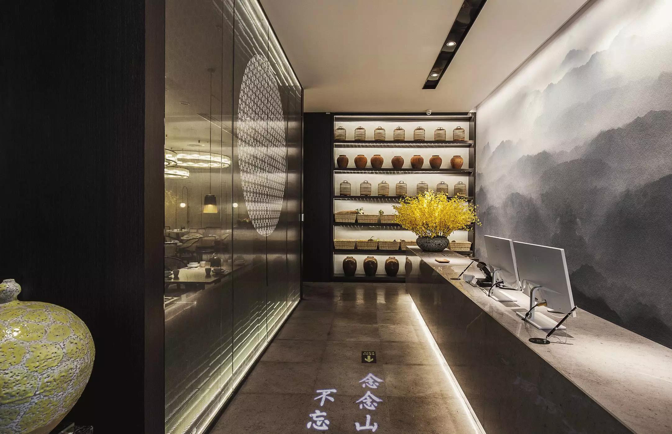 設計中廣泛使用了灰藍色調(diào)的石材,地磚,皮革,墻板,結(jié)合清新的藤編,厚重的木材,充滿質(zhì)感的不銹鋼以及別致的燈具和光線,讓整個空間既清新優(yōu)雅又不失質(zhì)樸,讓人雖身處鬧市卻仿佛置身于海的廣渺與山的深幽,又始終籠罩在一層淡淡的氤氳不去的“鄉(xiāng)愁”之中。